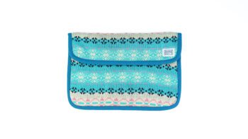 The Aurora Weave Wool Laptop Sleeve features a vibrant knitted wool exterior with a soft, fine wool lining, offering lightweight protection with a fresh, handcrafted look. Designed for everyday use with an eco-conscious touch