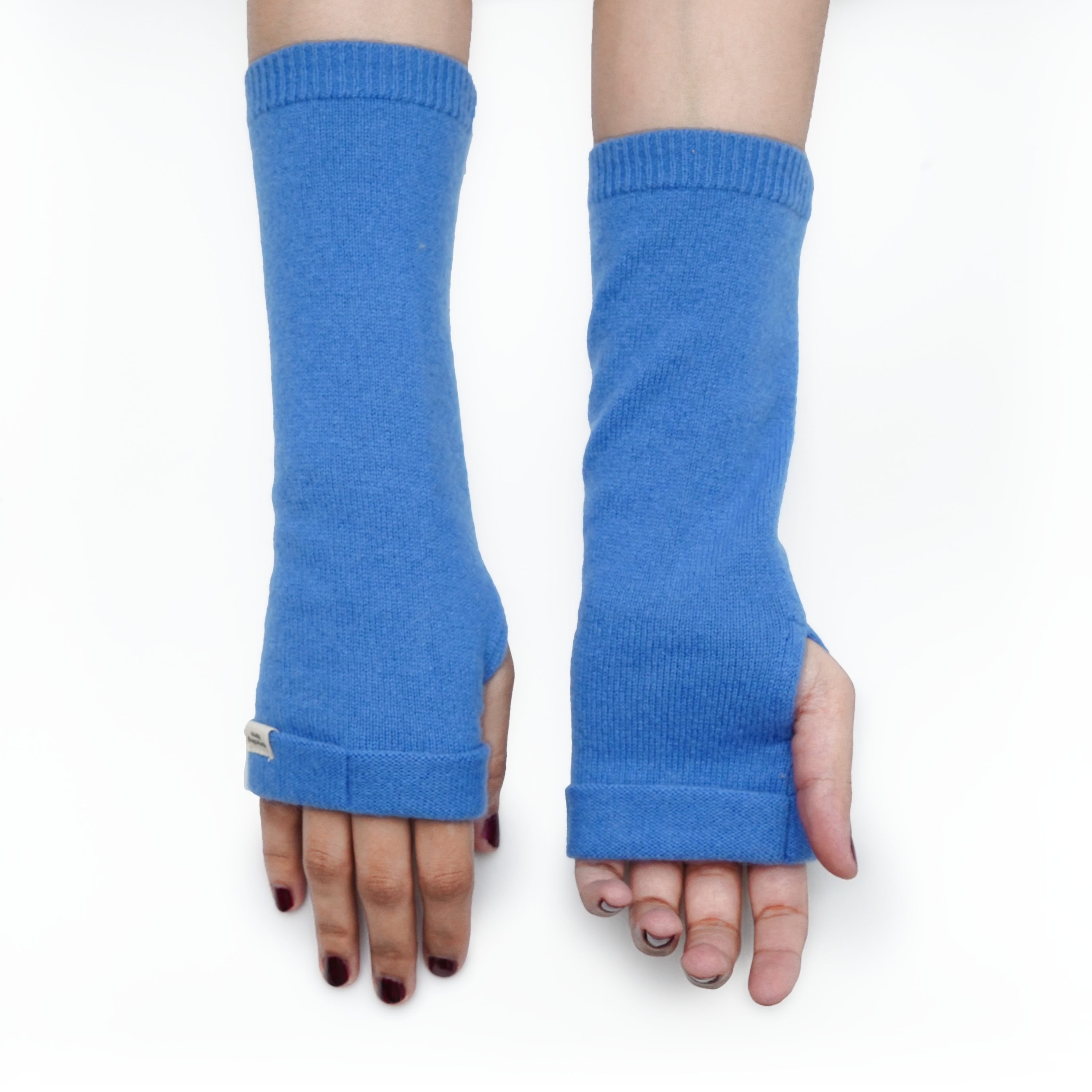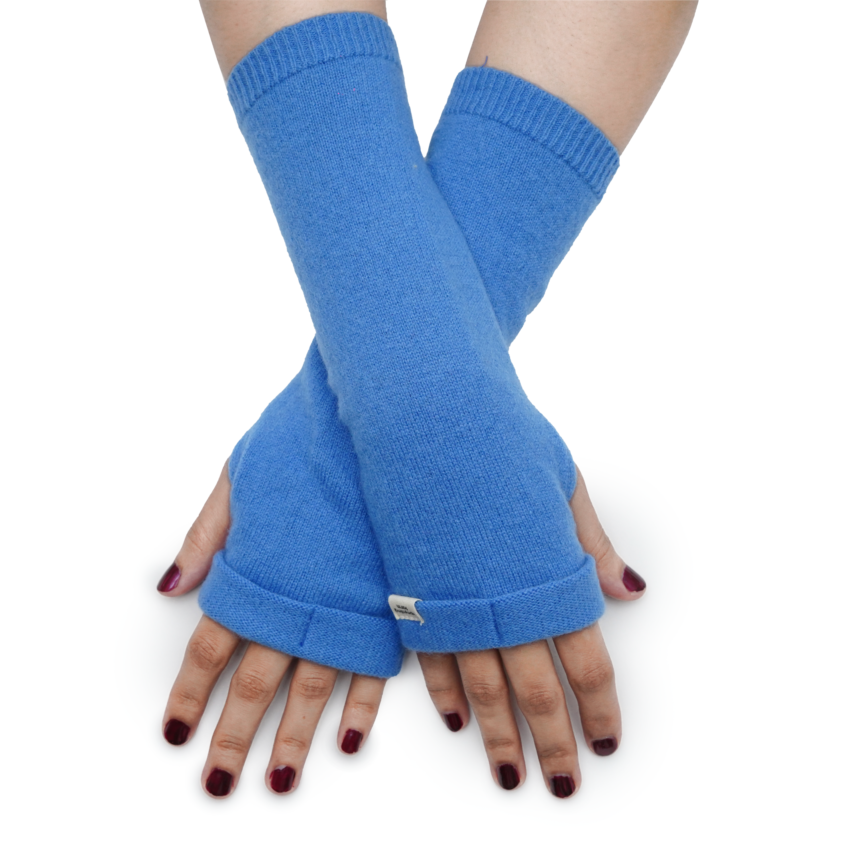 Soft blue fingerless gloves with a comfortable feel, designed for everyday ease and movement.