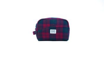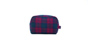 Designed for multi-purpose use, the bag features a spacious main compartment complemented by two inner pockets to keep essentials neatly arranged. A secure zipper closure ensures everything stays protected, while the side loop adds convenience for carrying or hanging during travel. Finished in a deep burgundy check inspired by forest canopies in autumn, the Burgundy Canopy Toiletry Bag is a premium essential for those who value quality, simplicity, and refined design.