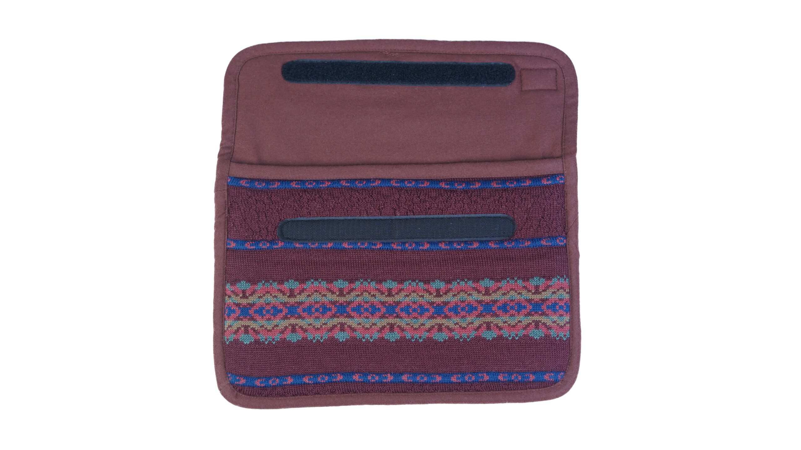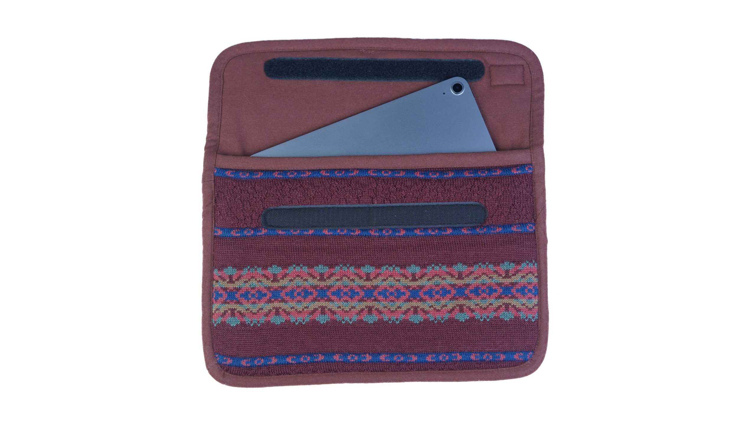 Its deep burgundy base, accented with subtle geometric detailing, gives this sleeve a refined, artisanal look that pairs beautifully with both casual and professional settings. Made from natural materials, Burgundy Tapestry is an eco-friendly wool laptop sleeve designed for those who value texture, durability, and timeless design.