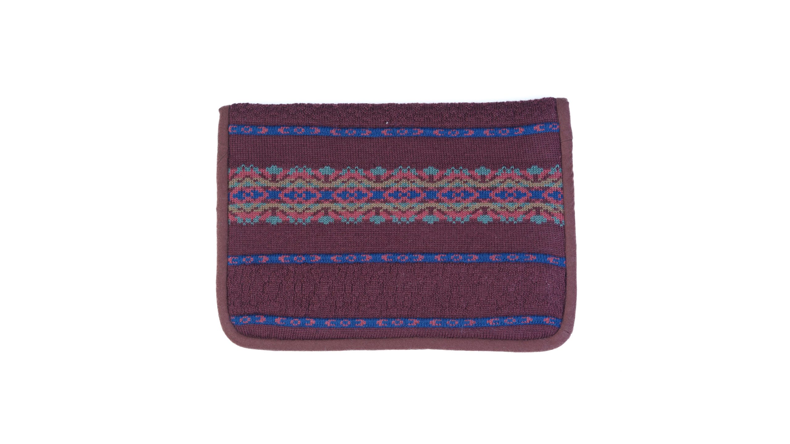 The Burgundy Tapestry Wool Laptop Sleeve features a finely knitted wool exterior with a soft fine wool lining, providing dependable laptop protection in a rich, heritage-inspired design.