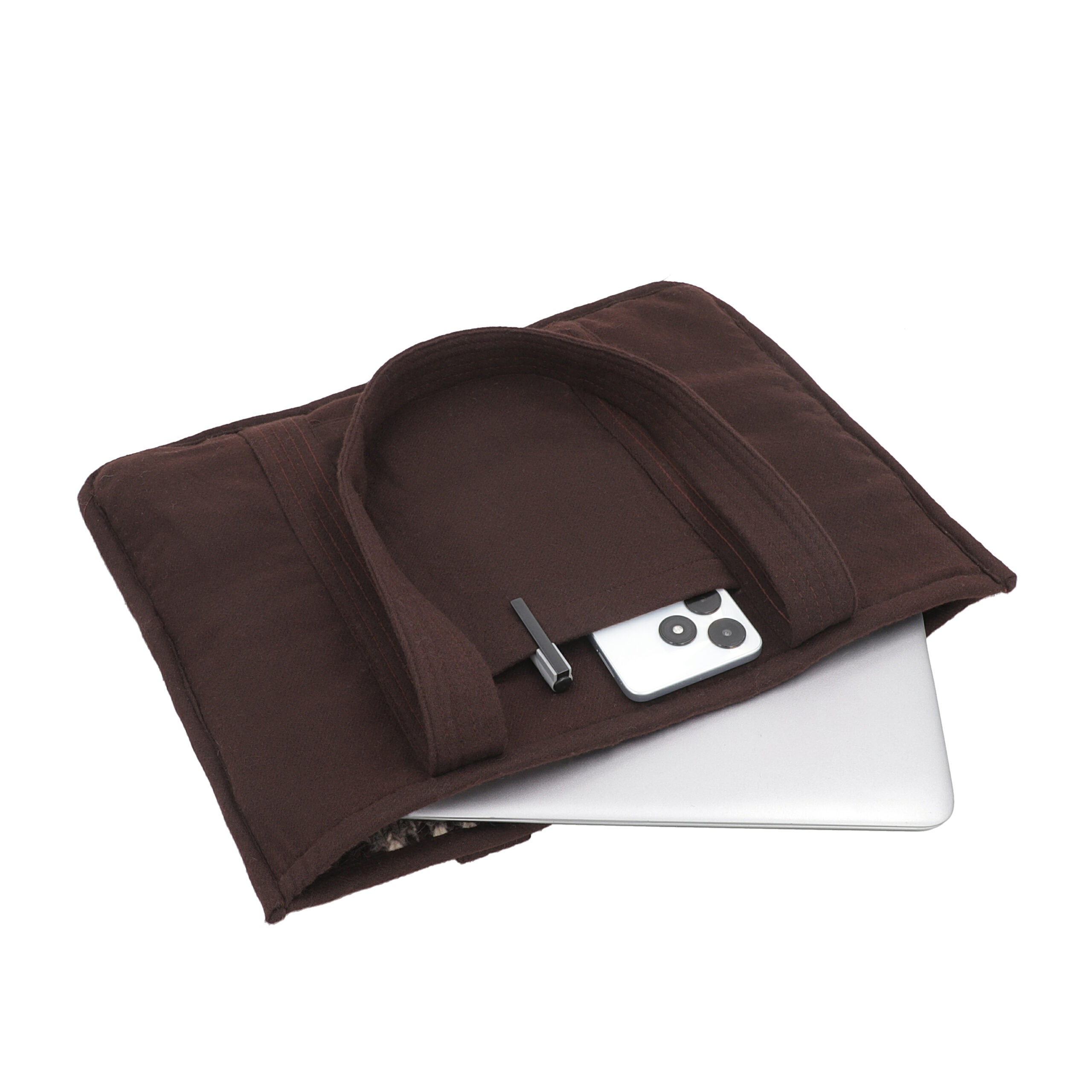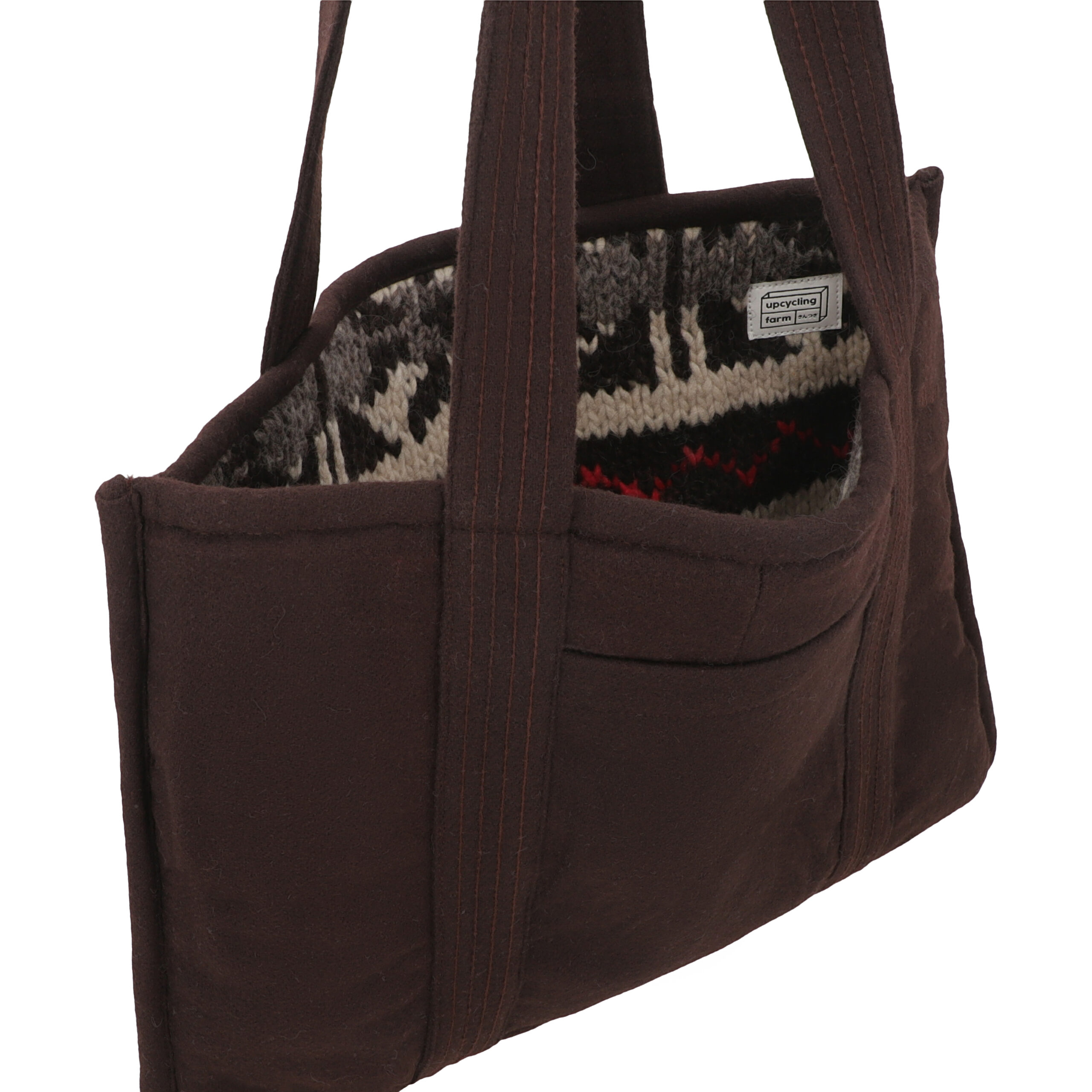 Warm, textured, and thoughtfully constructed, the Cocoa Weave Tote is crafted entirely from upcycled wool, giving new purpose to repurposed materials that would otherwise go to waste. Each bag supports a circular fashion approach while maintaining the durability needed for daily use.