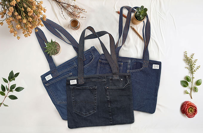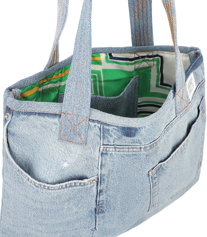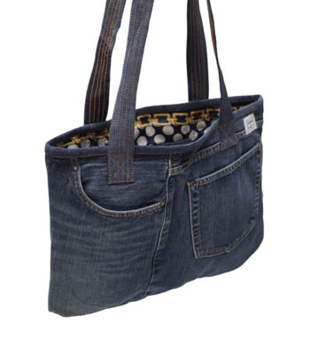Our 100% upcycled denim tote bags are unique, easily and feature a handy inner pocket to keep your essentials organized. Reversible for two stylish looks in one, these eco-friendly bags help reduce carbon waste while making you stand out in style.