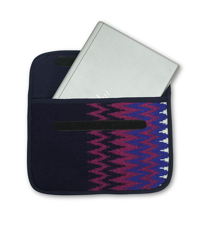 The Electric Twilight Laptop Sleeve offers a bold combination of style and sustainability. Crafted from repurposed knitted wool, its vibrant, textured exterior is both eye-catching and durable, reflecting an eco-friendly approach to design. The pure fine wool lining provides a soft and protective cushion for your laptop, guarding it against scratches, dust, and minor impacts.