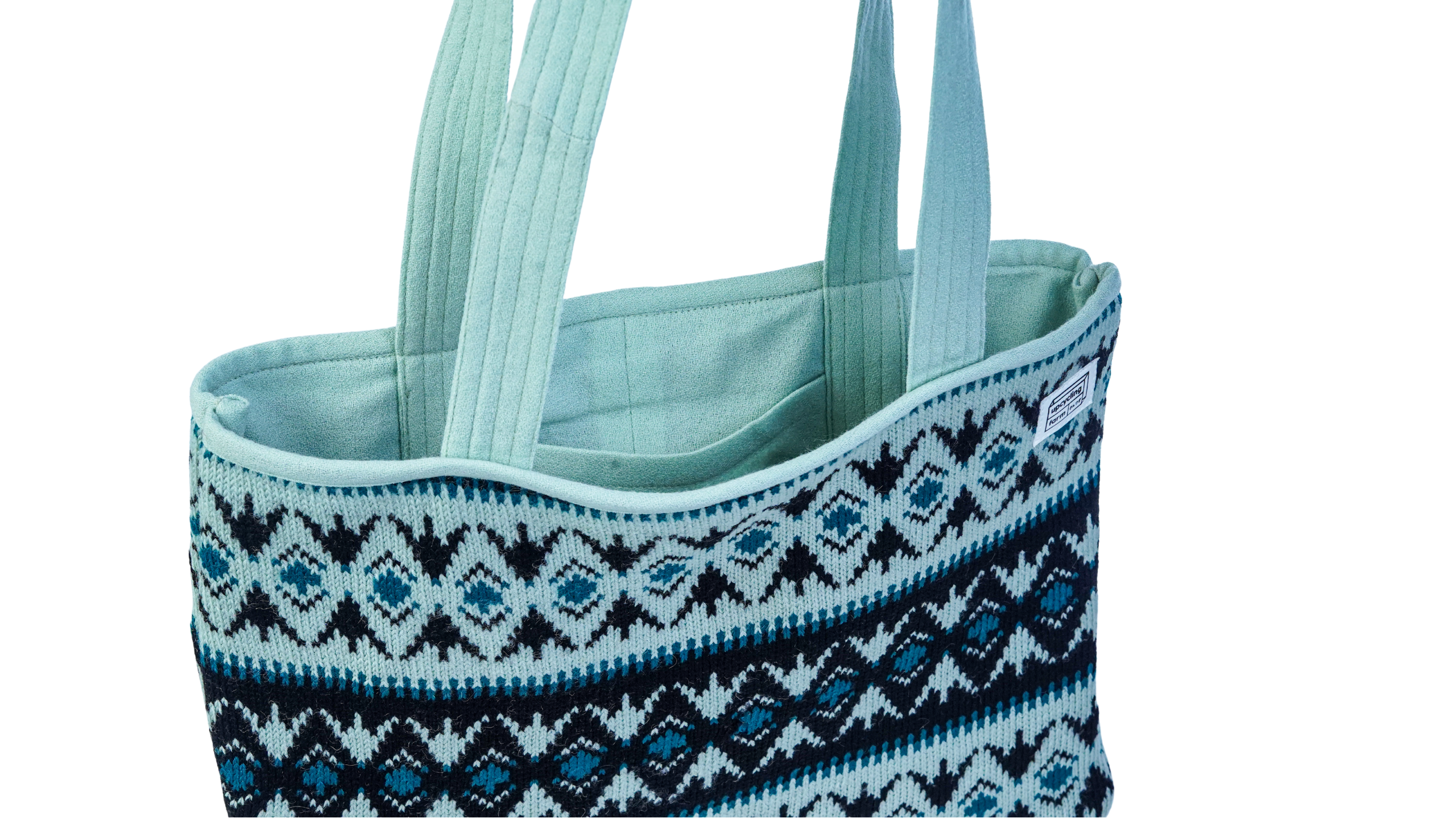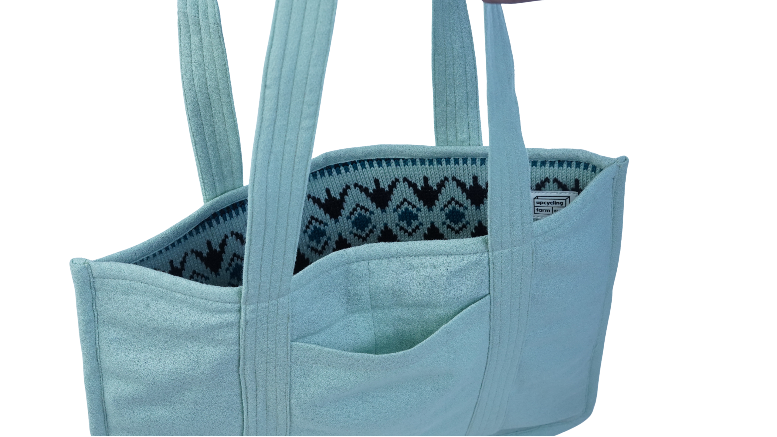The Icy Rhythm Tote Bag is crafted from 100% upcycled wool, designed for durability with a clean, graphic look. Fully reversible and ideal for everyday use, it features two distinct patterns in one bag along with an interior pocket to keep your phone and cards organized.