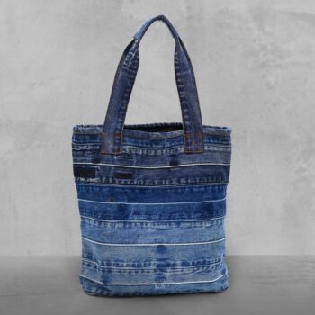 The Indigo Patch Tote blends repurposed denim with soft wool lining, offering a spacious, stylish, and eco-friendly carryall. With sturdy handles and a handy pocket, it’s perfect for everyday essentials.