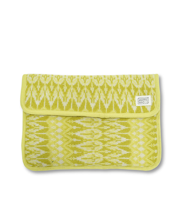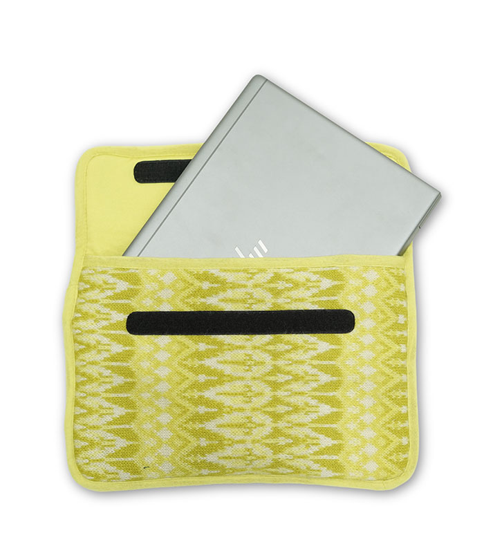 The Lemon Glow Laptop Sleeve adds a vibrant, eco-friendly twist to your tech accessories with a lively, textured wool exterior and soft wool lining.