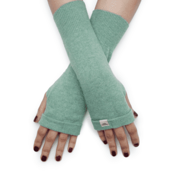 Soft green fingerless gloves with a comfortable feel, designed for everyday ease and movement.