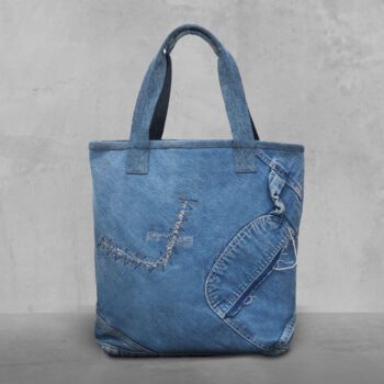 Adventure meets sustainability with the Indigo Nomad Tote—a stylish and functional bag that blends the rugged charm of repurposed denim with the softness of pure fine wool lining.
