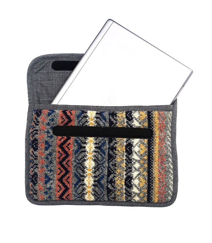 The Nordic Mirage Wool Laptop Sleeve is made from repurposed knitted wool, offering durable protection. With a soft fine wool interior, it keeps your laptop safe from scratches and dust, all in an eco-friendly design.
