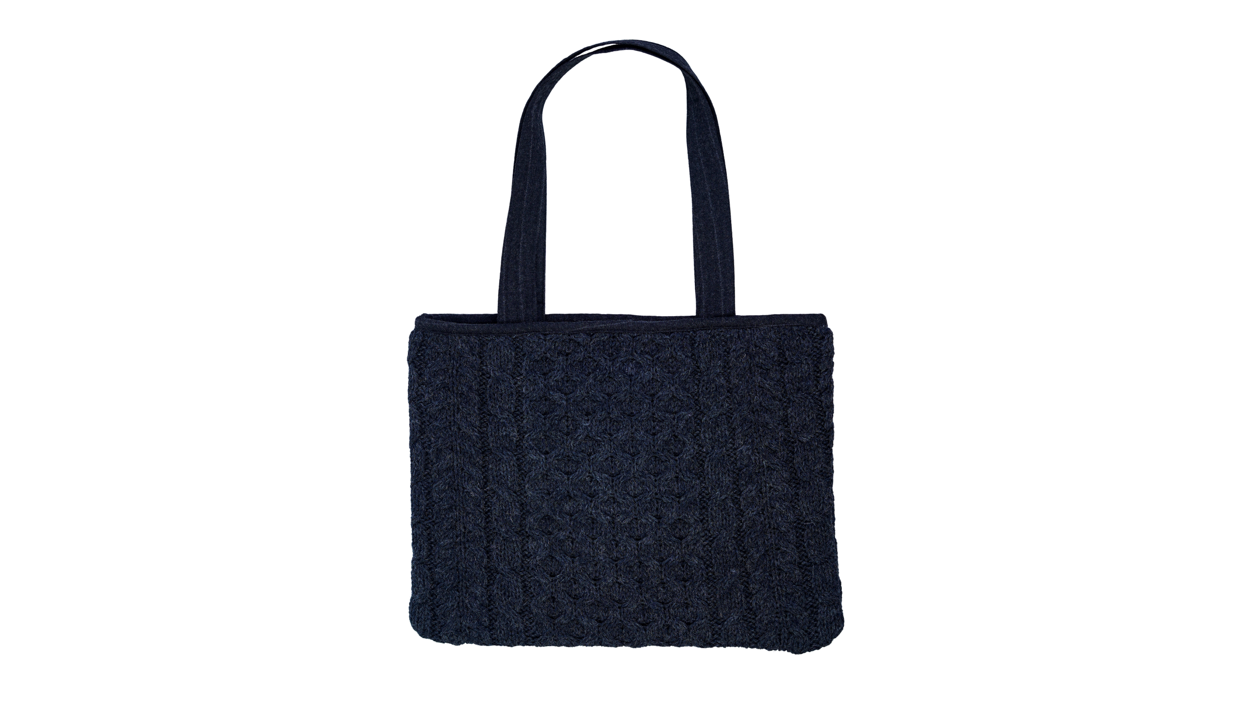 Step out with quiet confidence with Onyx Black Reversible Cable Knit Tote Bag