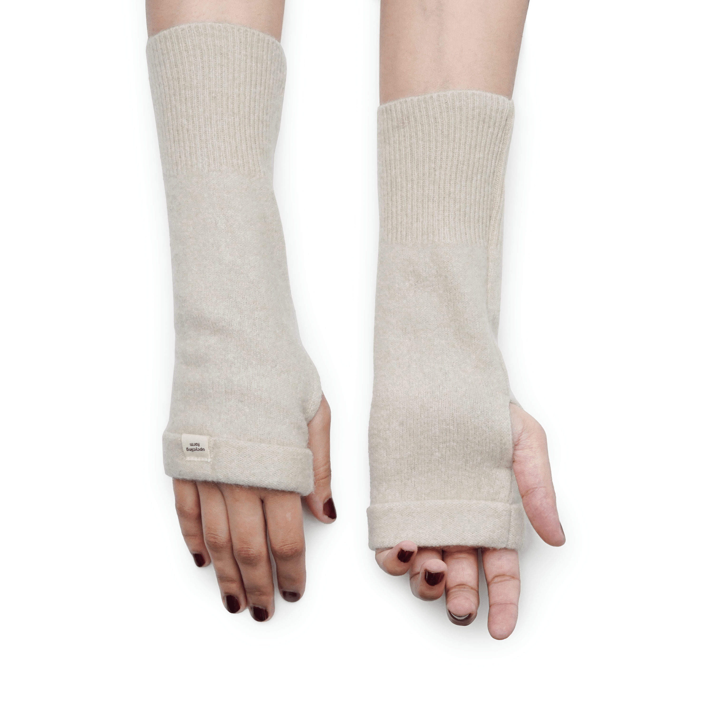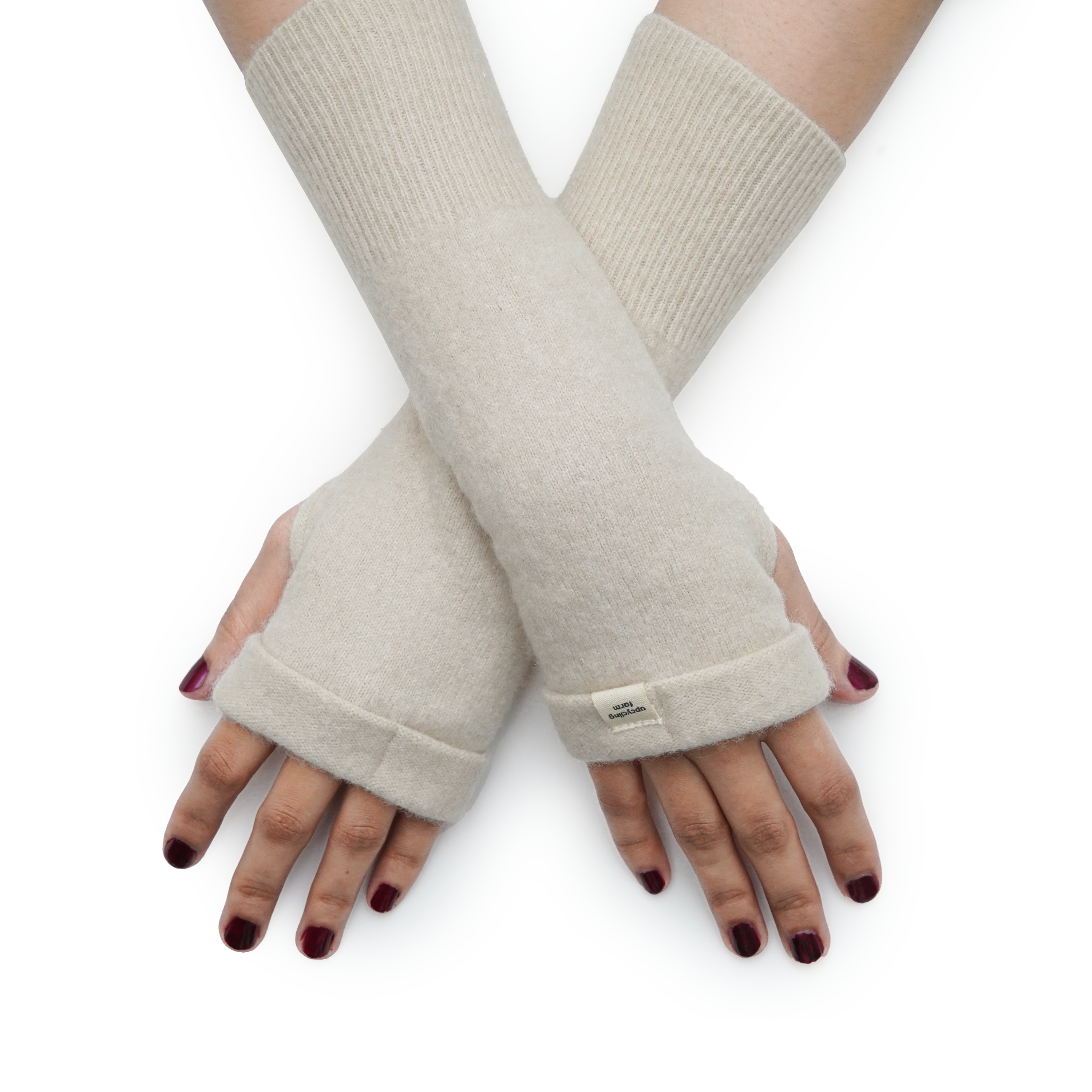 Pale Sand fingerless cashmere gloves in a soft, natural shade, offering gentle warmth, everyday ease, and understated elegance.