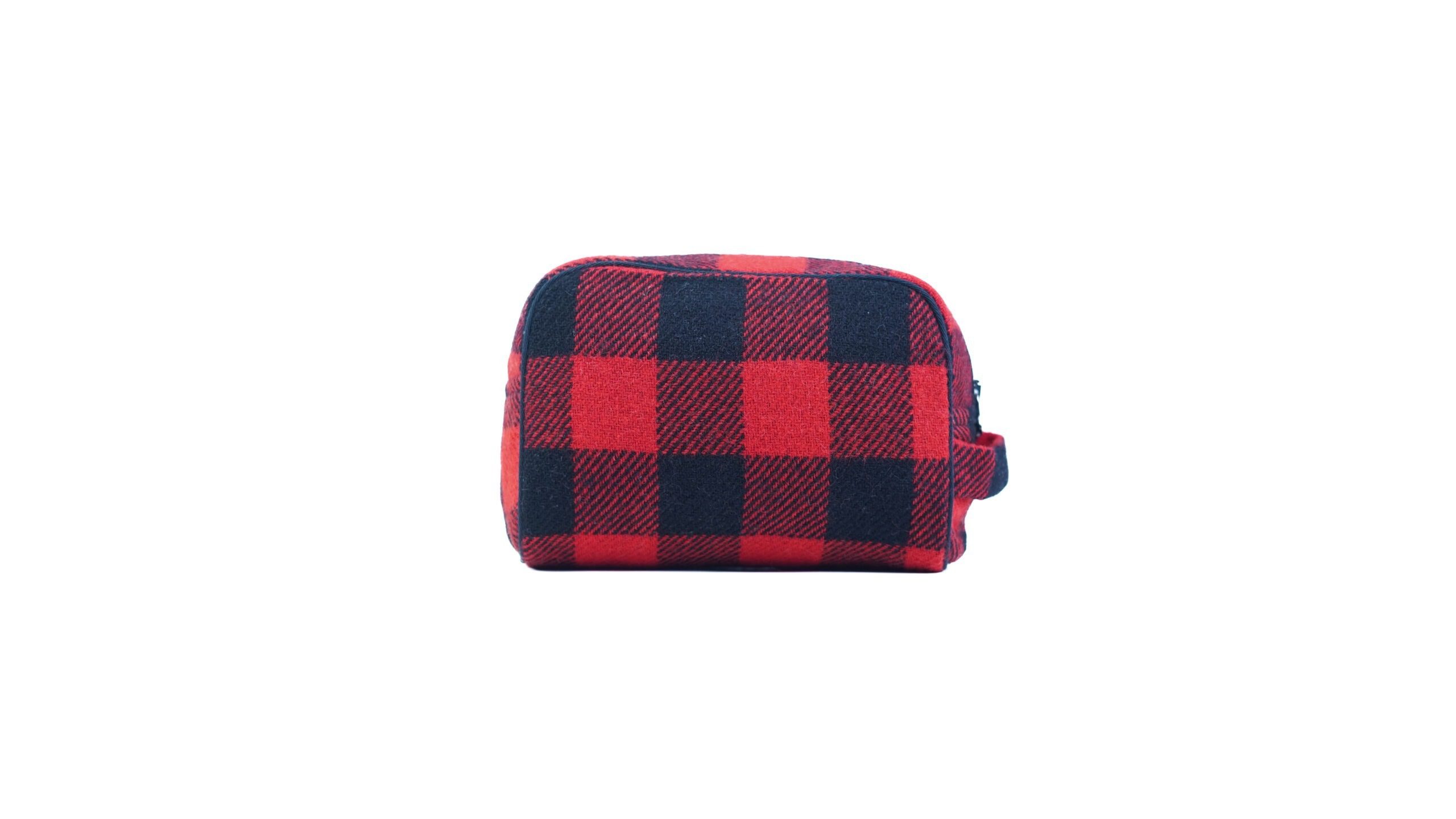 Designed for multi-purpose use, the bag features a spacious main compartment along with two inner pockets to keep toiletries, grooming items, or small accessories neatly organized. A smooth zipper closure ensures secure storage, while the side loop adds everyday convenience for carrying or hanging during travel. Finished in a bold red-and-black check inspired by forest trails and rugged landscapes, the Redwood Traverse Toiletry Bag is a refined essential built for both style and utility.