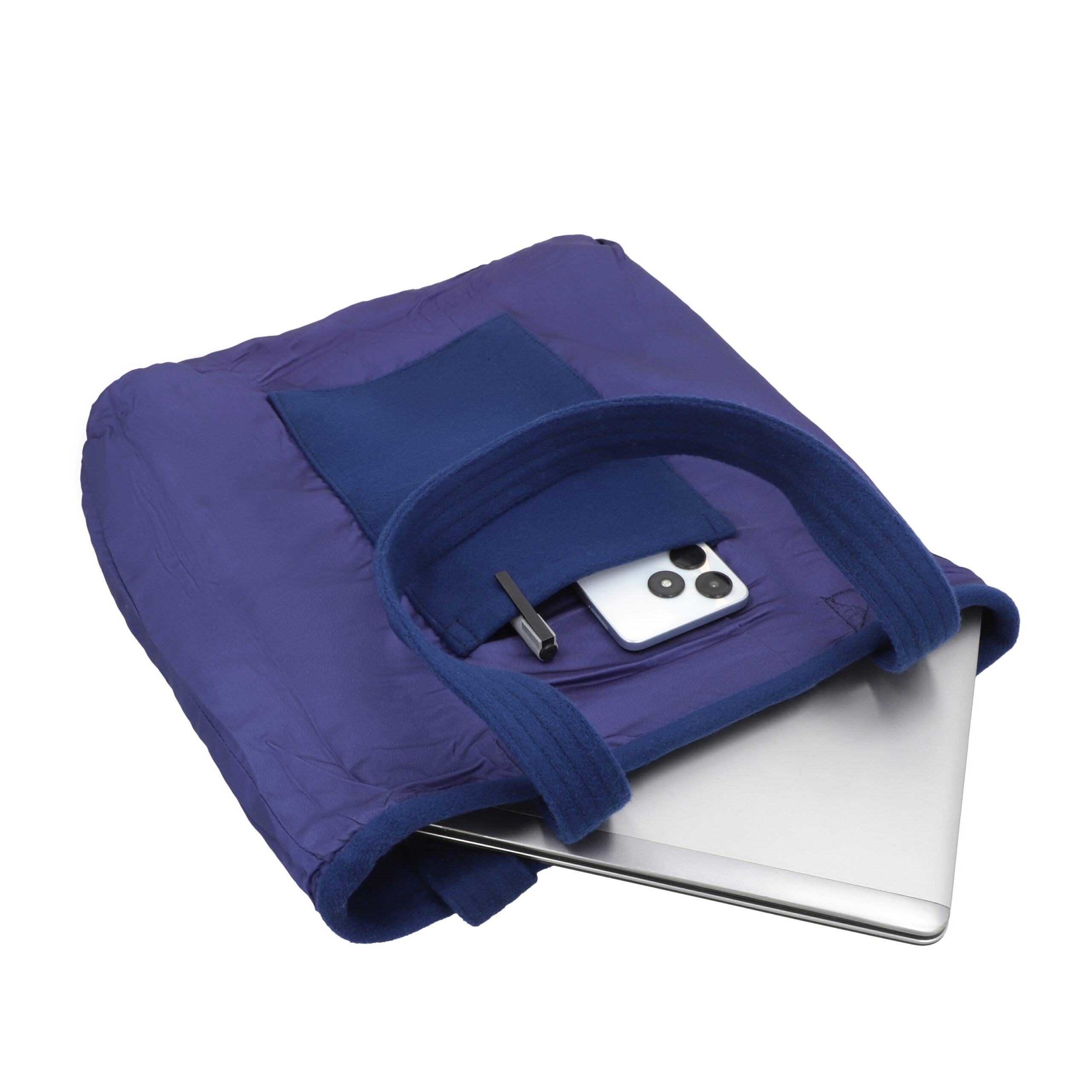 Crafted from 100% upcycled wool coats, the Royal Loom Everyday Tote features a deep navy tone and a clean, structured silhouette. Finished with a durable polyester lining and a functional inner pocket, this eco-conscious tote is designed for everyday use with a timeless, refined look.