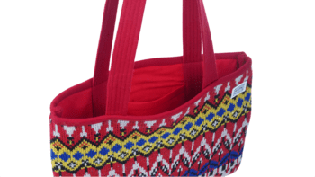 With its dynamic patterning and confident color palette, the Ruby Tapestry Tote Bag is ideal for daily wear, bringing together functionality, visual character, and responsible production in a statement piece designed to stand out