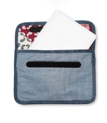 Made from durable denim, this laptop sleeve combines a soft poly scarf lining and an earthy, timeless design to keep your device safe and secure.