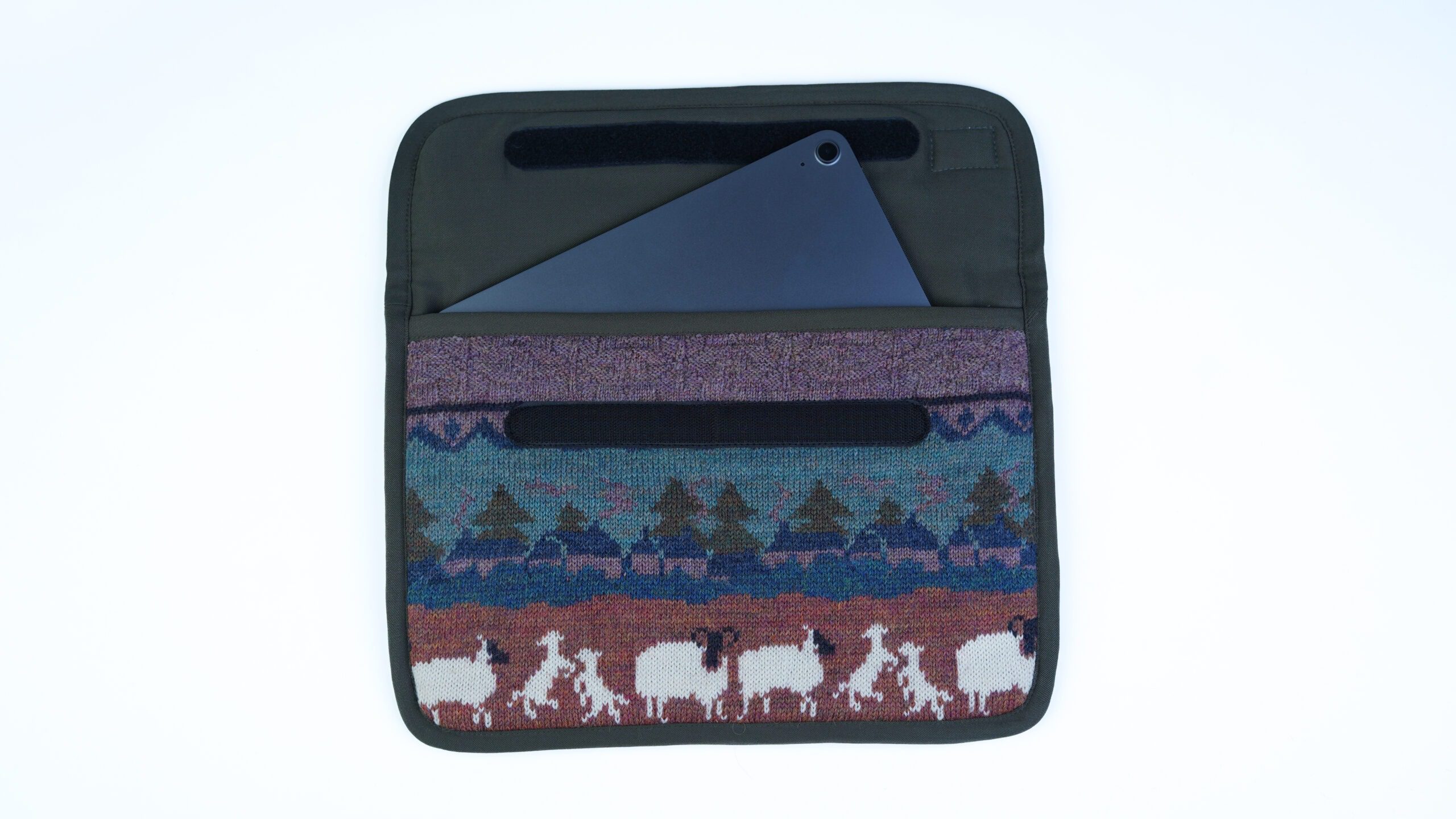 The Shepherd’s Trail Wool Laptop Sleeve features a richly knitted wool exterior with a soft fine wool lining, offering dependable laptop protection in a warm, countryside-inspired design.