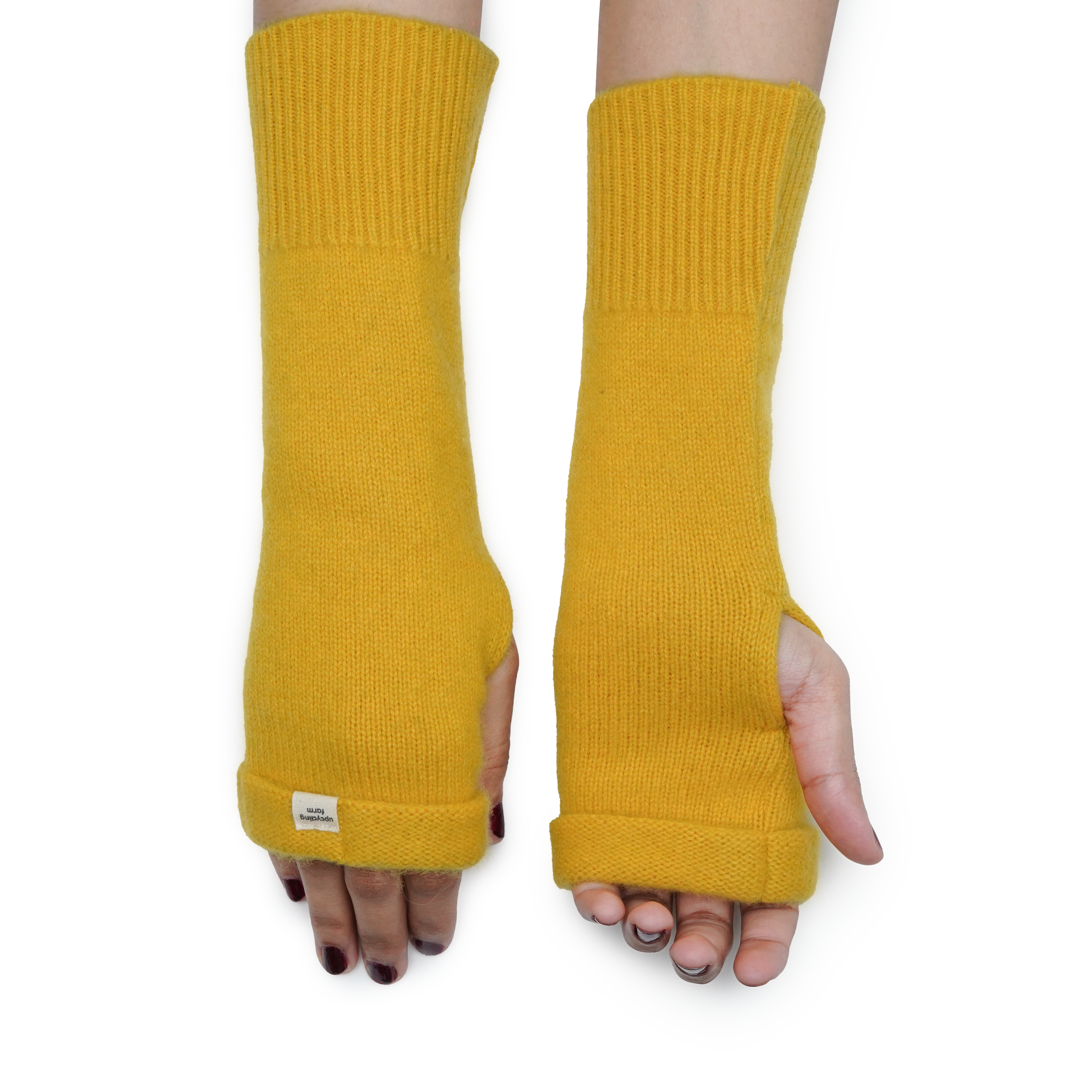 Warm yellow fingerless gloves with a soft feel, designed for everyday comfort and ease of movement.