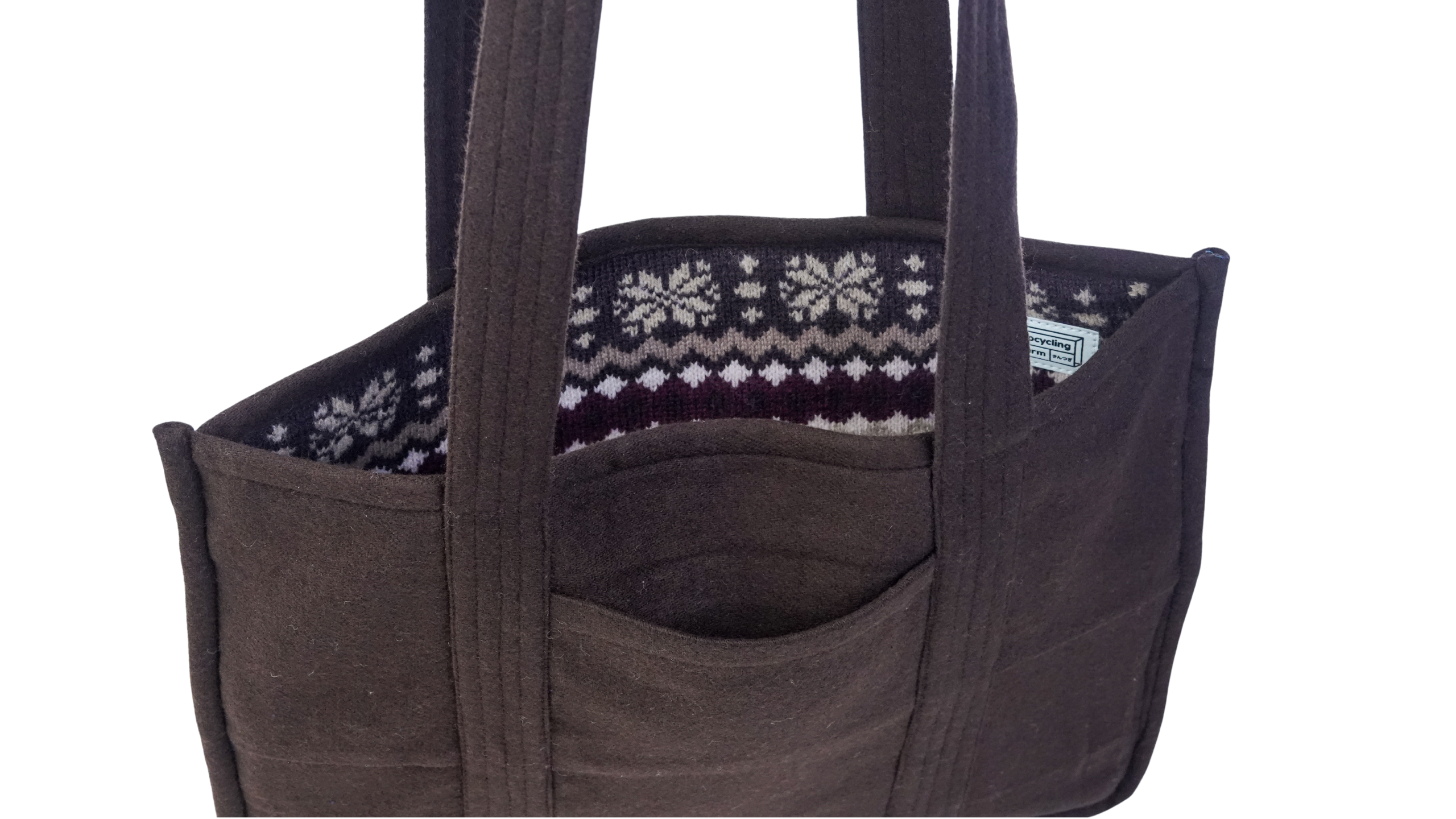 The Winter Dapple Tote Bag is crafted from 100% upcycled wool, designed for durability and everyday ease. Fully reversible with two complementary patterns in one bag, it also includes a convenient interior pocket to keep essentials close at hand