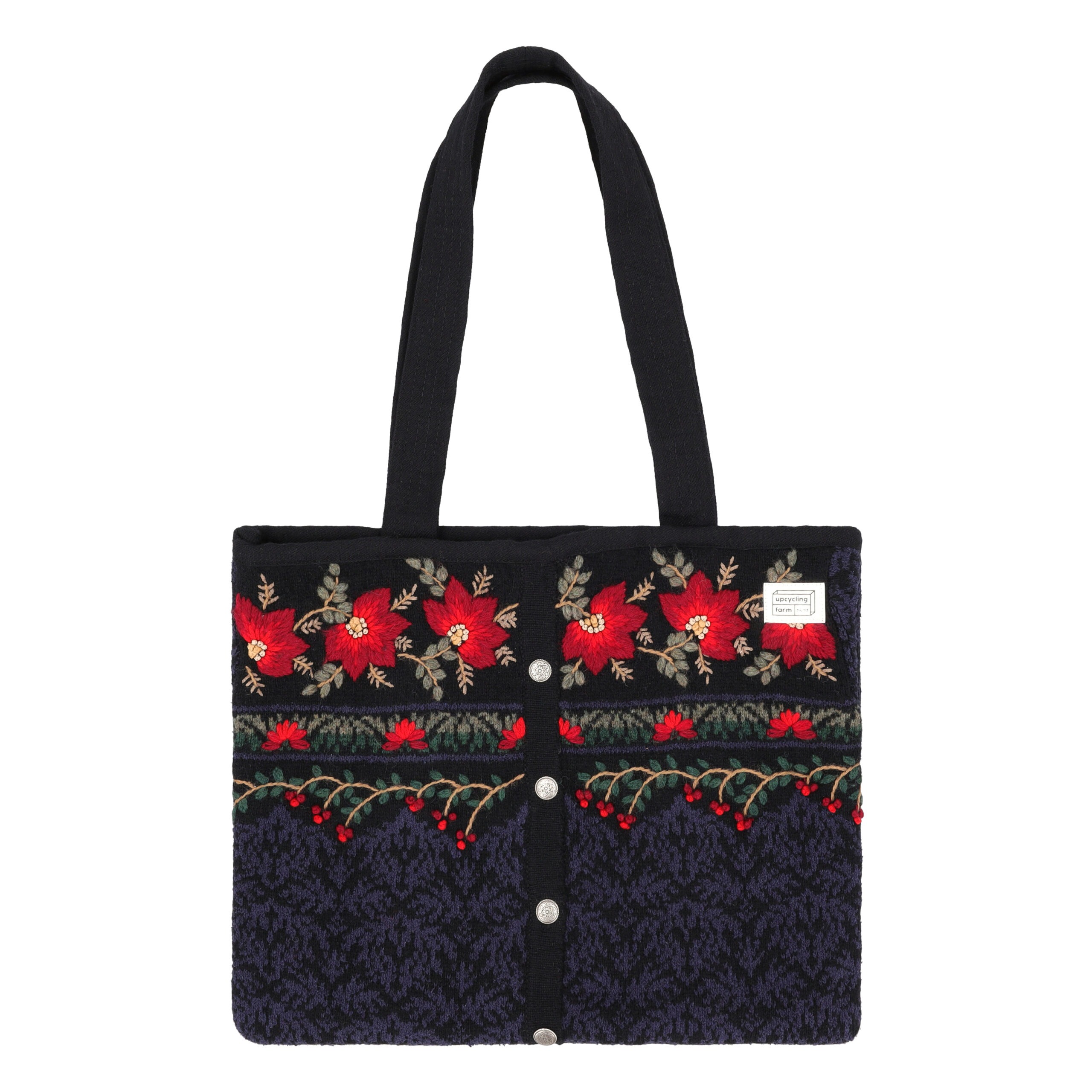 The Winter Rose Tote is made from 100% upcycled wool, designed for durability, versatility, and conscious everyday use. Fully reversible with two distinct patterns in one bag, it also features an interior pocket to keep your phone and cards neatly organized.