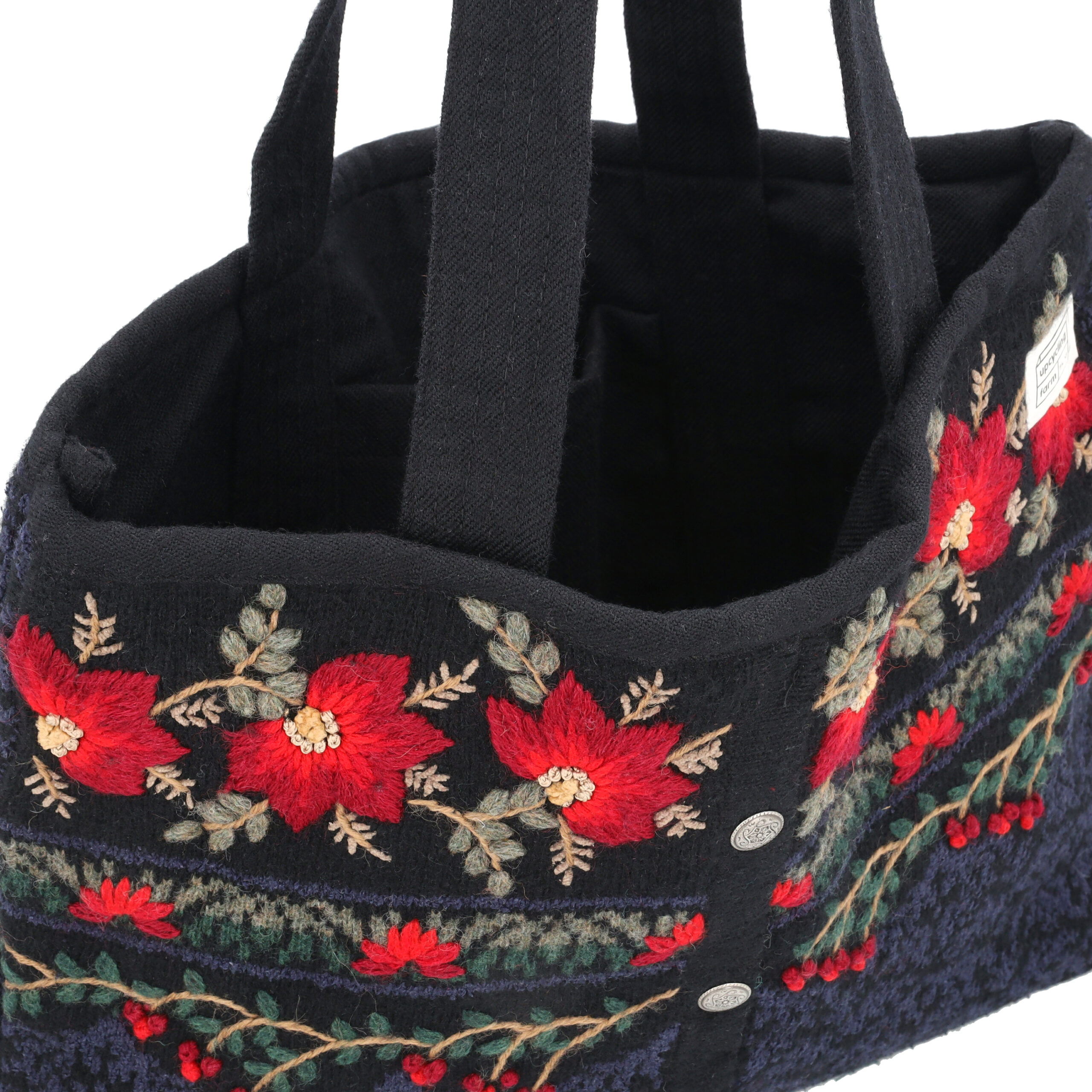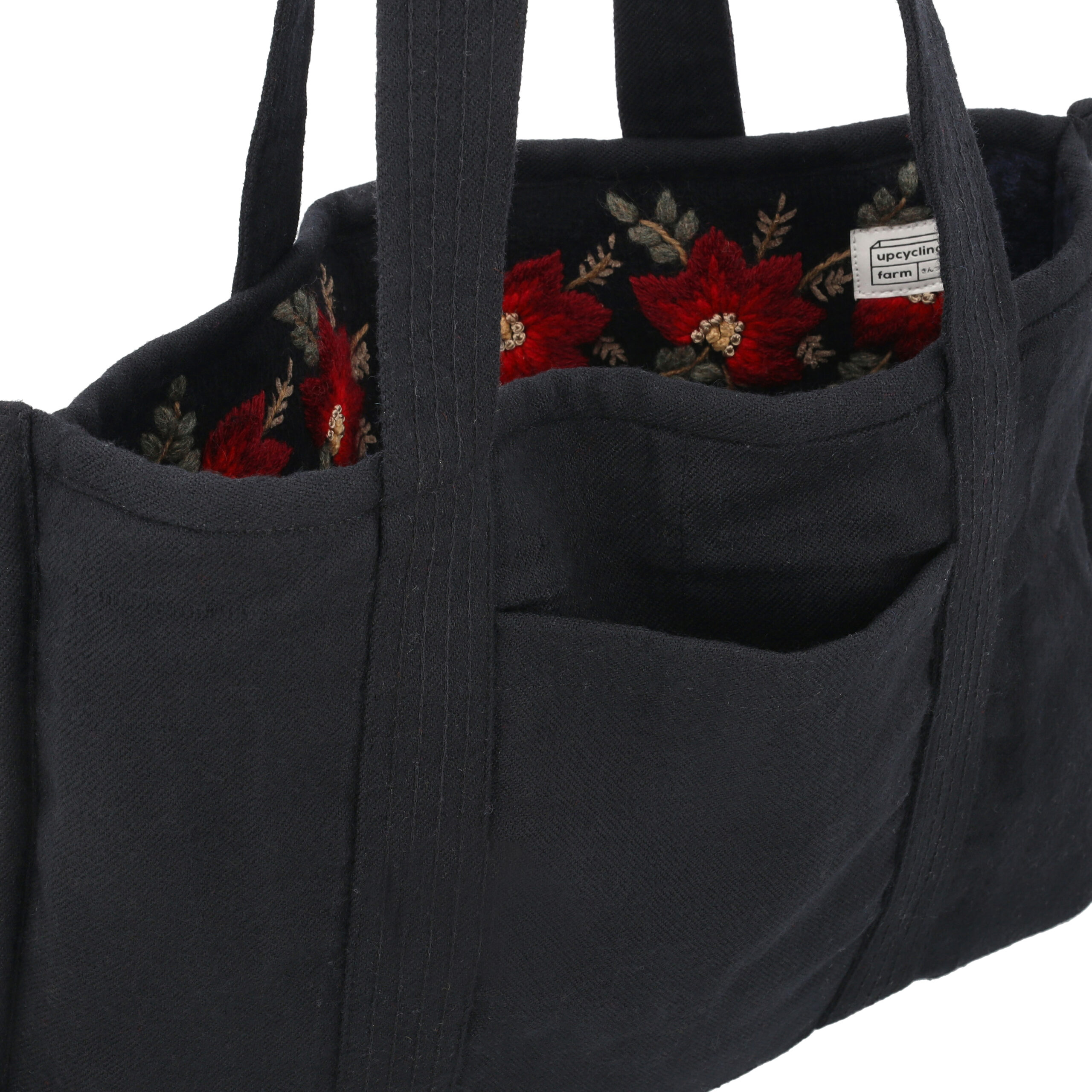 Rich in detail and contrast, the Winter Rose Tote is crafted entirely from upcycled wool, giving discarded textiles a renewed purpose through thoughtful design. By repurposing wool materials, this tote supports a circular fashion approach while reducing textile waste.